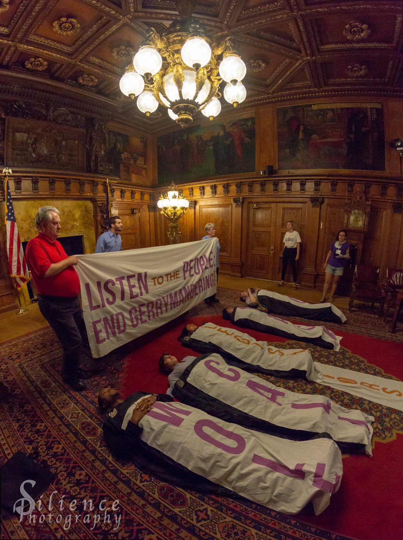 On Monday, June 25, the Pennsylvania State Legislature left for their summer vacation without voting on a piece of reform that takes the power to redistrict out of incumbent hand’s and puts it in the hands of citizens. The reform has been supported by a historic grassroots coalition that has lobbied nearly the entirety of the Pennsylvania Legislature, spoke with tens of thousands of voters, and mobilized thousands of people to rally at the Capitol. Governor Wolf has the power to bring legislators back into session to vote on this Constitutional amendment, before the legislation dies on July 6th and we are stuck with a corrupt redistricting process until 2032. While Governor Wolf was not in the office, protestors committed to camp out in the office until we heard a statement from Wolf that he would call legislators back from their vacation and return to session.