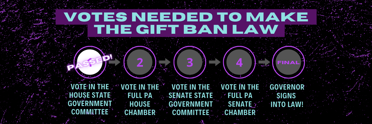 We will continue to push the Gift Ban through each vote needed for it to become law. Please consider becoming a recurring donor today to help sustain the fight over the next year to get the Gift Ban through both chambers before session is over.