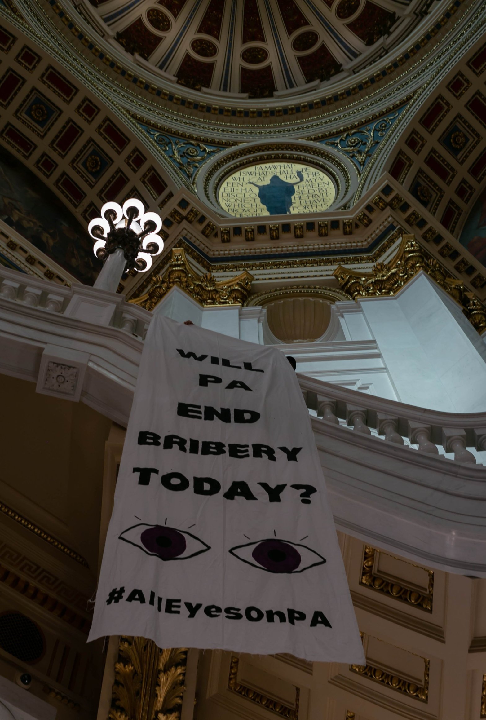 When you enter into the State Capital in Harrisburg, Pennsylvania, you are suddenly cast into a shameless and shameful arena where money and power will lie and manipulate in order to maintain a power structure that works for big money special interests, and not for the people of Pennsylvania. This is exactly what happened last week, when our State Legislature actively fought against a Gift Ban bill that would make it illegal for lobbyists to bribe our 253 State Legislators with over $1.5 million a year in fancy meals, vacations, sports tickets, private jet flights, and more.