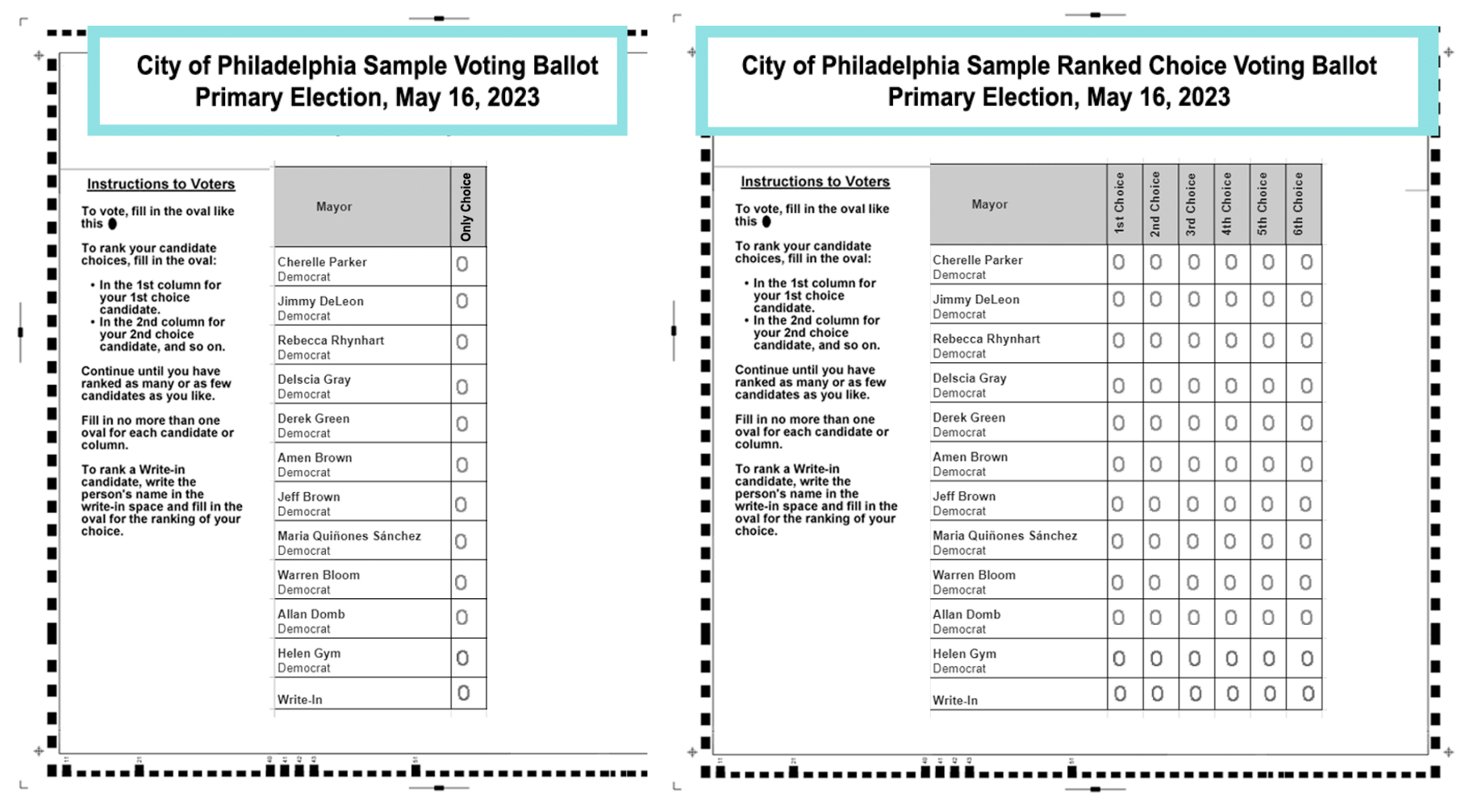 Click here to vote in a mock RCV election of the 2023 Democratic Mayoral Primary for Philadelphia!